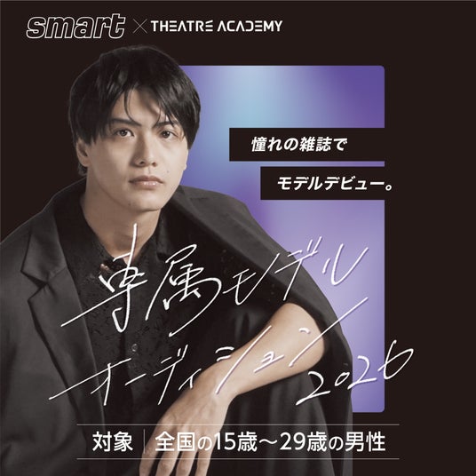 1980年の創業以来、さまざまな分野で活躍できるタレントを輩出し続けてきたテアトルアカデミーと、新世代のための“リアルなお洒落”を追求する宝島社のメンズファッション誌『smart』とのコラボオーディションです。