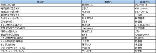 初開催となる今回は、「男性部門」「女性部門」「BL部門」「TL部門」※2の4部門を設け、各15作品計60作品を選出いたしました。