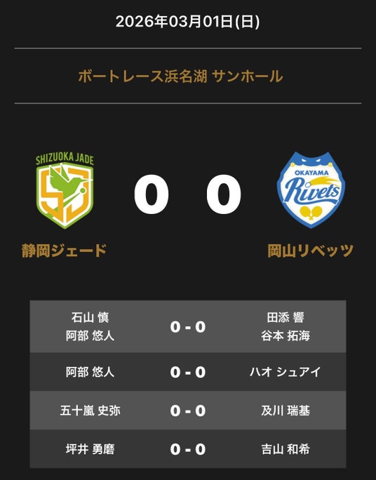 ノジマTリーグ 2025-2026シーズン 公式戦 3月1日開催 「静岡ジェード vs 岡山リベッツ」の対戦オーダーを発表いたします。