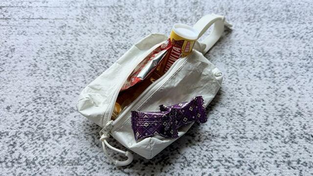 だから、手洗い後の濡れたハンカチを入れたり、外出先で出た小さなゴミを一時的に入れておく「携帯ゴミ箱」として使うのもアリ。