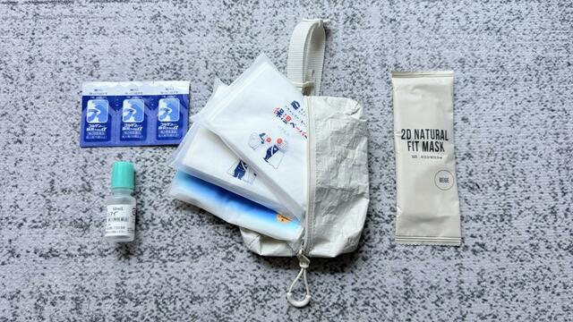 水に強いので、ウェットティッシュやアルコールジェルを入れて“衛生ポーチ”として使うのも相性抜群ですし、トラベルサイズの導入美容液やオイルなどもぴったり入ります。