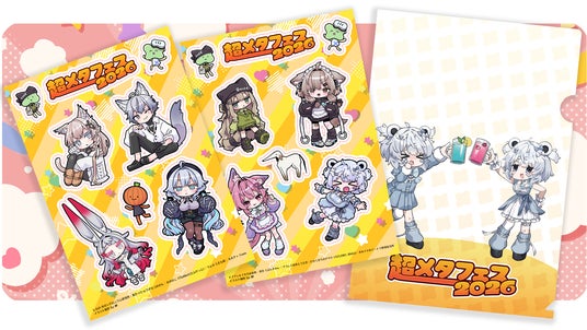 VRChatアバターのステッカー、JINGO先生描き下ろしイラストクリアファイルを配布。