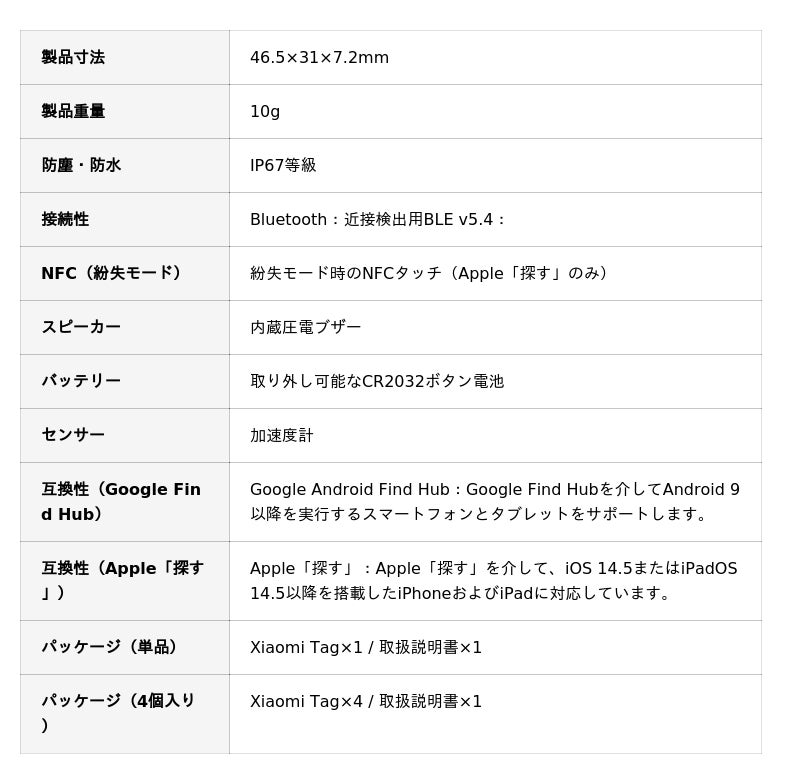 ■「Xiaomi Tag」製品特長