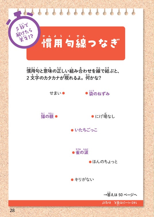 章末には、「慣用句線つなぎ」や「慣用句穴埋め」などのパズルページも入っており、楽しく学べる1冊になっています。