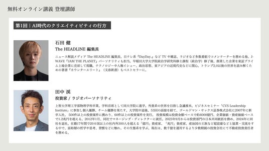 「THE CREATIVE ACADEMY 2026 1st」の開講にあたり、どなたでも参加可能な「無料オンライ講義」を、募集期間中に2回開催。