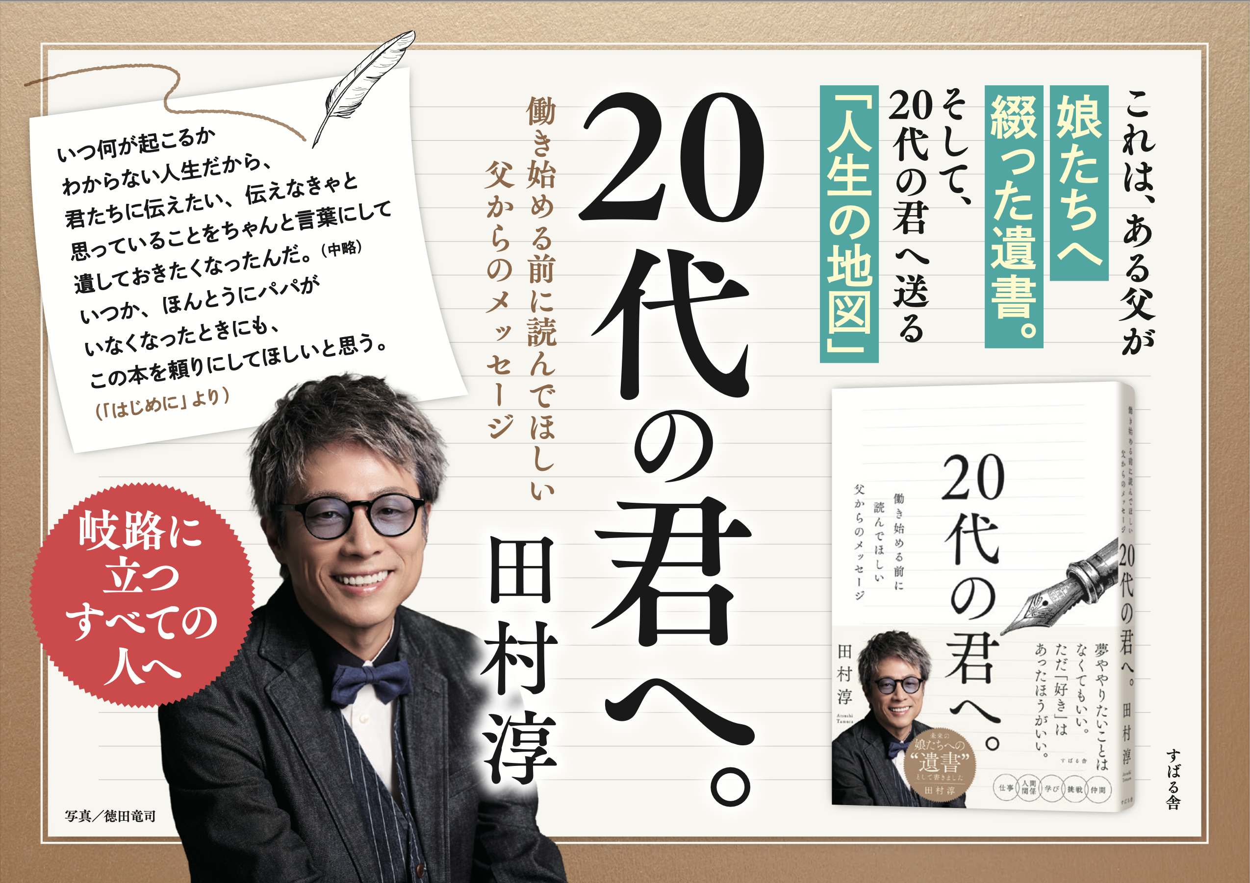 【発売前重版!】田村淳さんが「娘たちへのメッセージ」を綴った書籍『20代の君へ。働き始める前に読んでほしい父からのメッセージ』が本日4月24日(金)発売!
