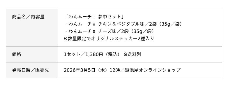 2026年3月2日、日本ペットフード株式会社(代表:代表取締役社長執行役員 片山 俊次)は、株式会社湖池屋(代表:代表取締役社長 佐藤章)とコラボした愛犬用おやつ「わんムーチョ」を発売いたします。