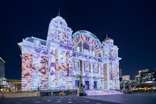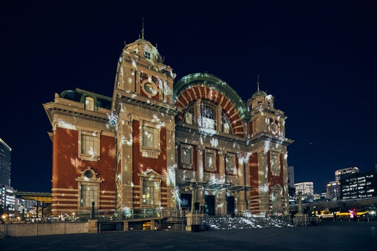 「大阪・光の饗宴2025」のコアプログラム「OSAKA光のルネサンス2025」の中核コンテンツで、ネオルネッサンス様式建築の重要文化財・大阪市中央公会堂の壁面に、「光輝く大阪の夜」をテーマにステンドグラスの色彩と煌めき、水面のように揺れるクリスタルの光などのプロジェクションマッピング映像を投影しました。