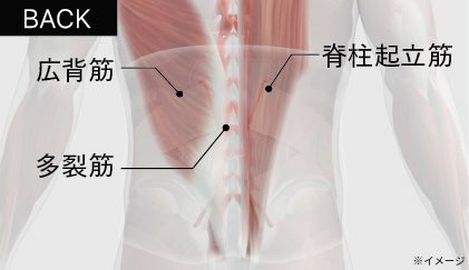 アウターマッスル:腹直筋、腹斜筋、広背筋(下部)、脊柱起立筋(下部)