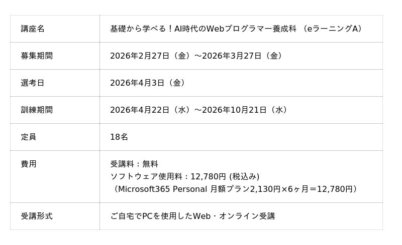 ■基礎から学べる! AI時代のWebプログラマー養成科とは