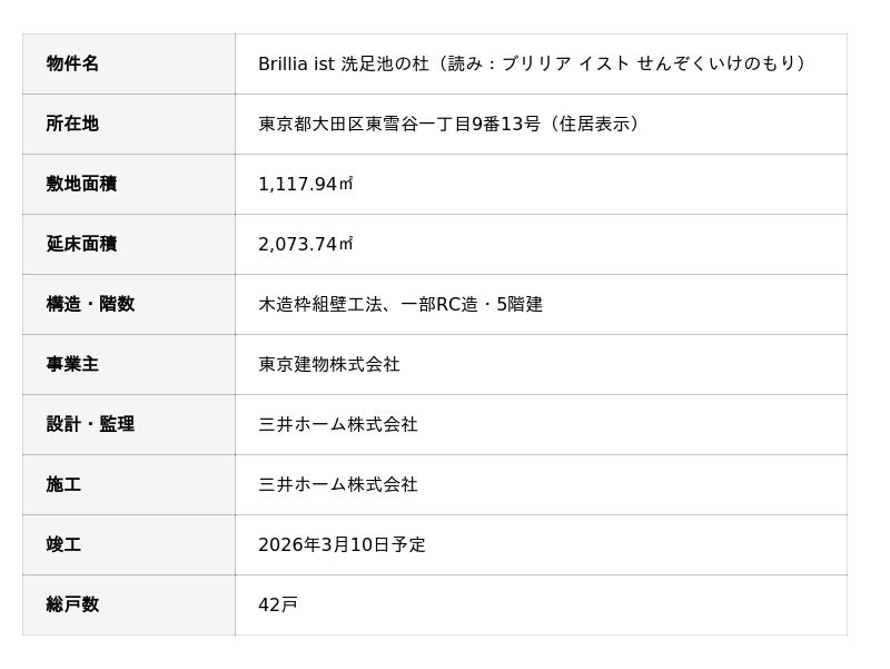東京建物株式会社と三井ホーム株式会社は、東京建物として初となる木造賃貸マンション「Brillia ist 洗足池の杜」(以下「本物件」)が完成したことをお知らせします。本物件は、主要構造部や共用部および一部の住戸の内装仕上げ材において木材を使用することで、環境負荷が少なく、快適な住まいを実現しています。