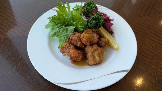 ホテルオリジナル日本酒「Q(きゅう)」「X(かける)」の副産物の米ぬかを使用した竜田揚げに、甘辛いソースをからめた仕上がりになっています。(2026/3/6(金)~5/31(日)までの限定ニュー)