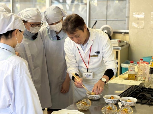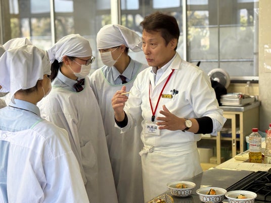 吉良高校の生徒さんと当館和食料理長・藤口