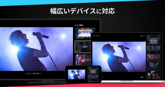本機能は、シンプルな操作で、1つのライブ配信に対して複数のカメラ映像を切り替えて視聴できる点が特長です。視聴者は、全体映像や出演者の表情など、その瞬間に見たい映像を自分で選びながら、より臨場感のあるライブ配信をお楽しみいただけます