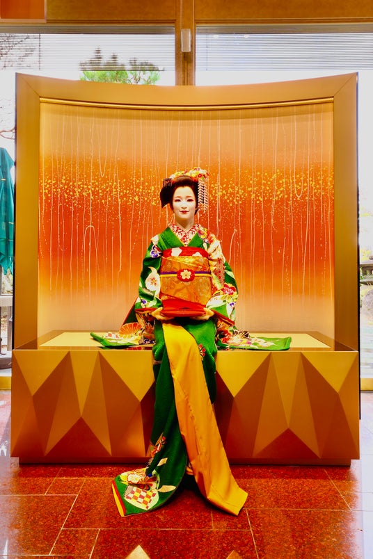 茶ト加々阿の店内では、舞妓ロボット「茶ト加(ちゃとか)」が抹茶で皆様をおもてなし。茶ト加が座るステージは、背景を華やかな和紙や季節の植物が彩る、絶好の写真スポット。京ことばで語りかける茶ト加と一緒に写真を撮るのもOK。また、季節ごとに植物が変化し、茶ト加が話す言葉も変わるので、何度来ても新しさを楽しめる写真スポットです。