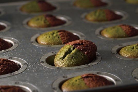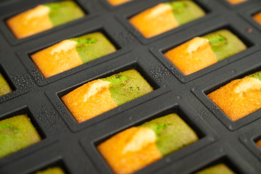 抹茶&バターの2色フィナンシェを焼きたて提供。 税込1個220円