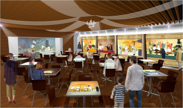 2月17日(火)からは、おなじみ「ムーミンカフェ」とコラボしたシネマサロンも期間限定でオープン。映画の中に登場するリビエラのホテルをイメージした空間の中、キュートなムーミンプレートやムーミンが描かれたラテを楽しみながら、映画に関連する未公開映像などを見られるそう。