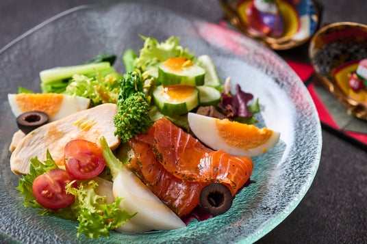 体に優しいハーブサラダに、福島県産の「低カリウムレタス」や「かぶ」「菜の花」「小松菜」「きゅうり」などの野菜を具だくさんに盛り合わせました。自家製の野菜すりおろしドレッシングでいただく、福島県の恵みを一皿に凝縮した彩り豊かなサラダです。
