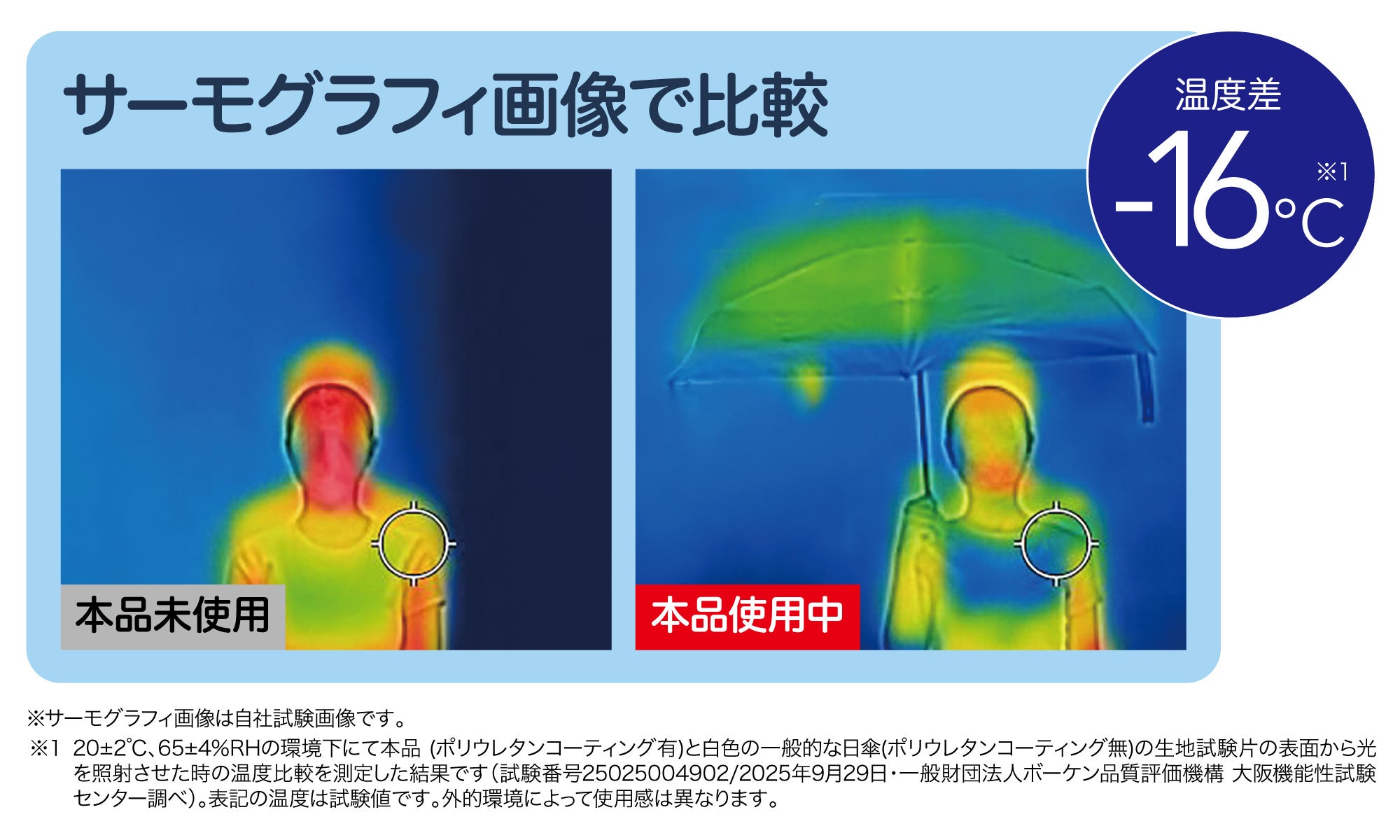 UVカット率99%/UPF50+、遮光率99.99%(遮熱1級)!外側は光を反射しやすい明るいカラー、裏側は黒色のポリウレタンコーティングをしているので−16℃もの遮熱効果、まぶしさや熱をやわらげてまるで木陰の中にいるような快適さ!お出かけをもっと快適にしてくれます。