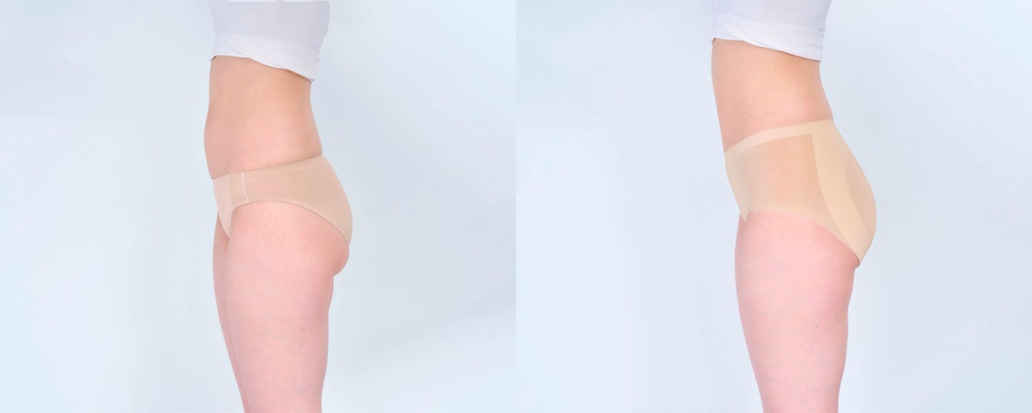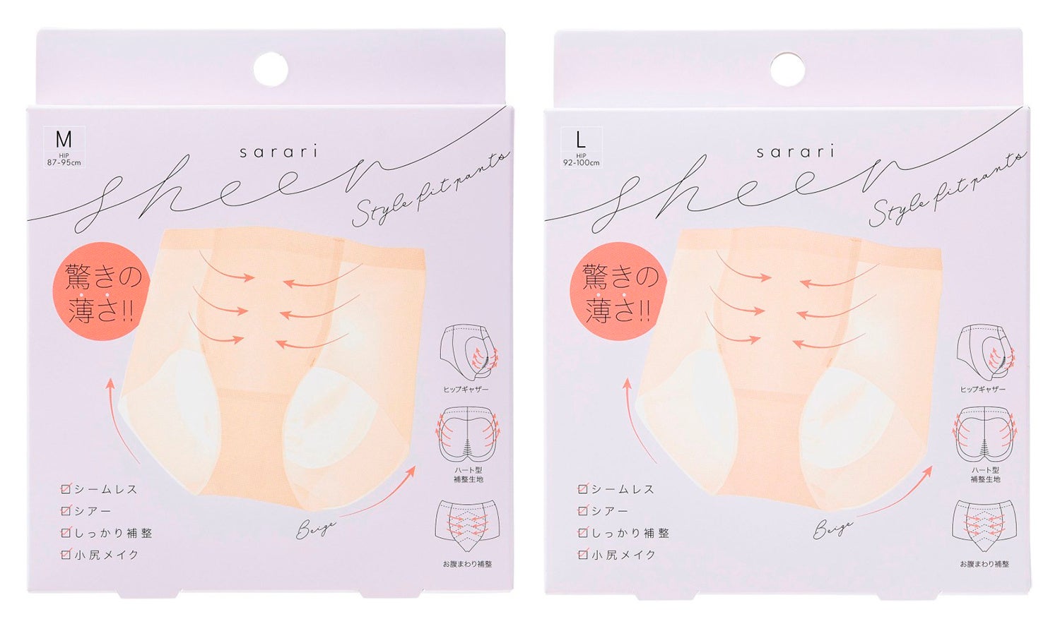 透け感のある軽やかな素材ながら、ヒップにはギャザーとハート型の補整生地を使用。自然に丸みを持たせながら、小尻見せを叶えます。アウターに響きにくいので、タイトなパンツやスカートの下にも安心。