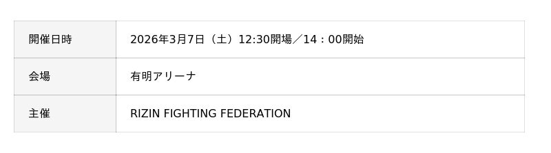 3月7日「RIZIN.52」(有明アリーナ)【今回】