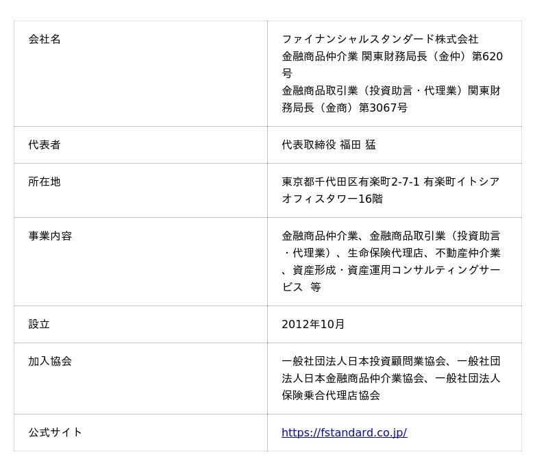 金融機関に属さない独立系ファイナンシャルアドバイザー会社として 2012年に設立。主に個人のお客様にゴールベースアプローチに基づいた長期資産運用を実現していただくことを目指す。顧客数は9,739名(2025年12月末時点)、仲介預かり資産は約3,010億円(2026年1月15日時点)。