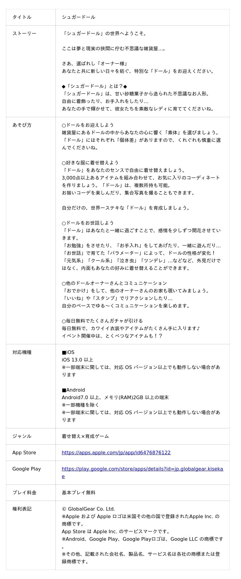 株式会社グローバルギア(本社:福岡県福岡市、代表取締役:佐藤竜史、以下「グローバルギア」)は、App Store、Google Playにて提供中の着せ替え×育成ゲーム『シュガードール』において、2026年3月1日(日)より、春をモチーフにした期間限定の少女型ドール「スプリング」が再登場したことをお知らせします。