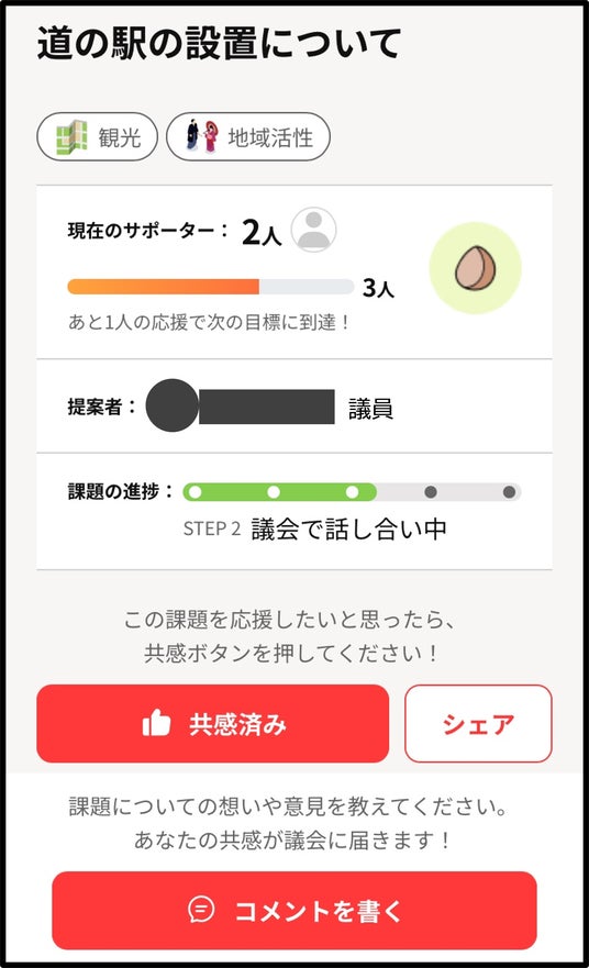▶住民が「共感」やコメントで意見を寄せ、政策の方向性を共有