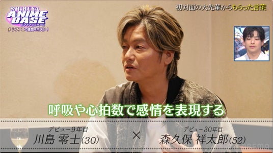 さらに話題は、森久保の「癖強声優」としての流儀へ。森久保は「奇をてらっているわけではなく、シンプルなことをやりたい。普通の『おはよう』でも、100人いたら98人がやるものではなく、99人目、100人目をやる。それが生きてきたフィルターを通るから個性に繋がる」と持論を展開。川島から「『邪魔だなこの癖』と苦労したことはあるか」と尋ねられると、森久保は「求められるストライクゾーンが限定されてきている感覚はある」と本音を吐露しつつも、過去に先輩声優の大塚芳忠に「癖のある声優って言われるんですけど…」と話した際、被り気味に「癖はいいぞ」と言われて救われたというエピソードを披露。「俺はお前も『癖はいいぞ』の一派だと思っている。期待してるよ」と川島に熱いエールを送りました。