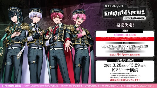 株式会社STPR(本社:東京都渋谷区 代表:柏原真人、以下「STPR」)は、当社所属の2.5次元アイドル・歌い手グループ「騎士X - Knight X -(通称:騎士X)」「すにすて - SneakerStep Prod.STPR MUSIC(通称:すにすて)」による春シーズン限定グッズ情報を公開、2026年3月7日(土)よりSTPR ONLINE STOREにて販売開始いたします。