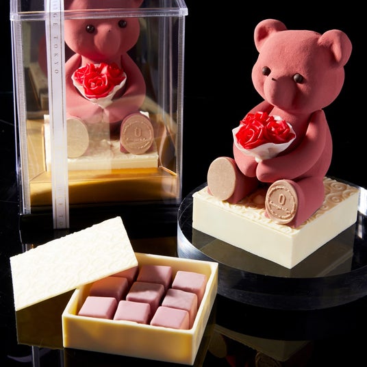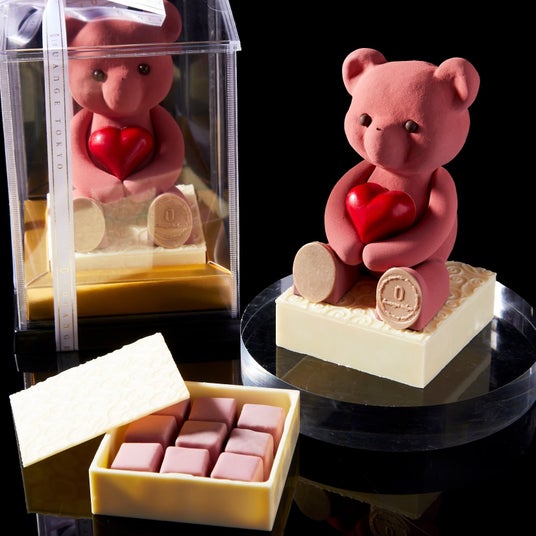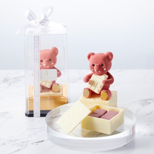 チョコレートでかたどったテディベア“ヌーミー”と“エイミー”が愛らしいショコラボックス。ボックスの中にはルビーチョコレートのボンボンショコラを忍ばせました。見た目の可愛らしさと華やかな味わいを同時に楽しめる、ギフトに最適な一品です。