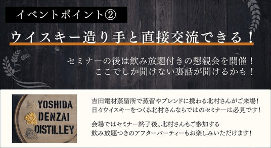 日本初の試みに挑戦し続ける、吉田電材蒸留所ならではのウイスキーを、東京の会場で、そして全国のご自宅で、ぜひご堪能ください!