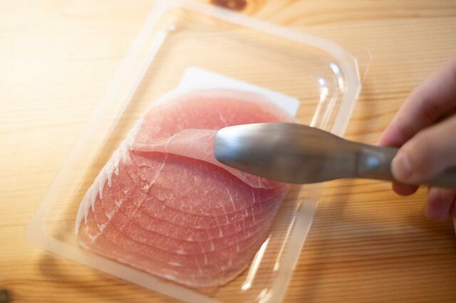 薄くてすぐ千切れちゃう生ハムだってこの通り。