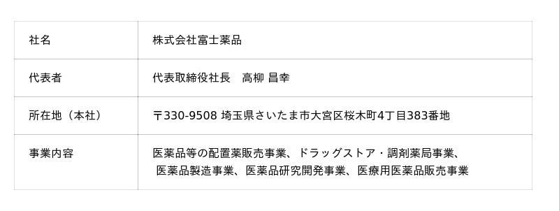 - 【株式会社富士薬品 会社概要】 URL:https://www.fujiyakuhin.co.jp