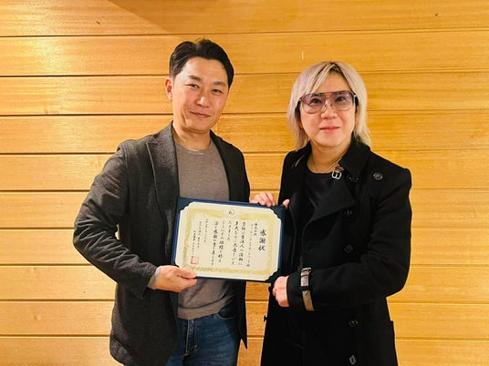 株式会社フューチャーリンクネットワーク 代表取締役 石井 丈晴 様への感謝状贈呈の様子