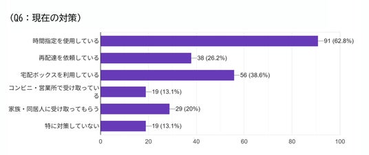 不在時の受け取り対策としては、依然として「確実に在宅して受け取る」ための時間指定利用が主流であり、置き配が広がる中でも対面受け取りニーズは根強いことが分かります。