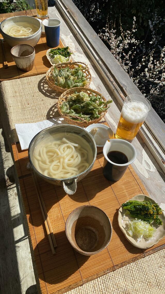 釜揚げうどん(はやし家)とプンタレッレの天ぷら。