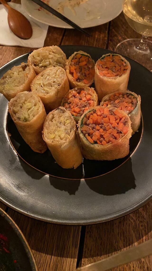 04春巻き(にんじん+肉、キャベツ+肉(あーこれもうまい)