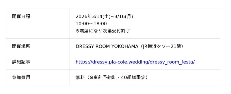 特集記事 https://dressy.pla-cole.wedding/202603-placoledressy/