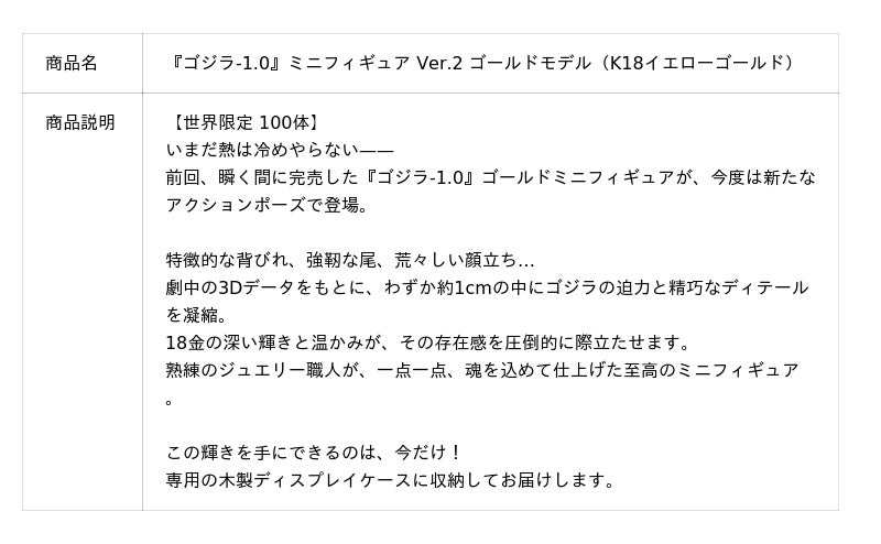 【ゴジラ】シリーズとコラボレーションしたジュエリークオリティのフィギュアを販売中