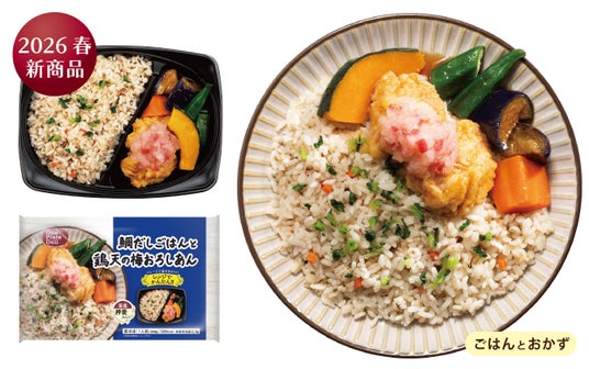 冷凍食品売り場で品揃えの少ない「魚」メニューを2商品ラインナップし、選択肢を増やしました。鯛だしごはんと鶏天の梅おろしあん