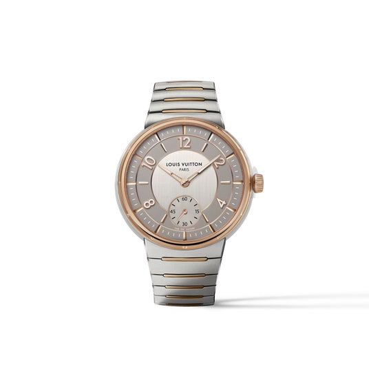 また、ステンレススティールとローズゴールドを組み合わせたウォッチ「タンブール オトマティック スティール&ゴールド」も着用しました。