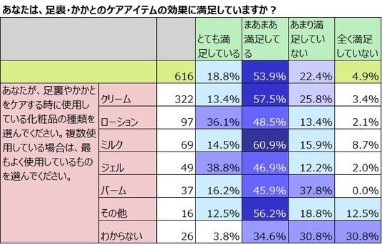 足裏・かかとのケアに満足しているのは約7割。