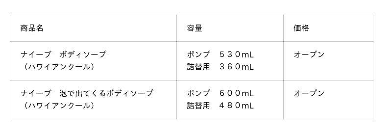 クラシエ株式会社(ホームプロダクツカンパニー)は、洗う成分100%植物生まれの「ナイーブ」ボディソープから、家族みんなを冷んやりさっぱりと洗い上げる「ハワイアンクール」を、2026年4月10日(金)に数量限定で発売いたします。