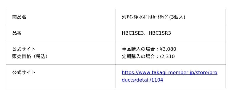 ※浄水カートリッジ3個セット(単品購入 3,080円税込) 年2箱の場合の計算式:3,080円×2箱÷365日=約16.9円/日(毎日500mL使用時)