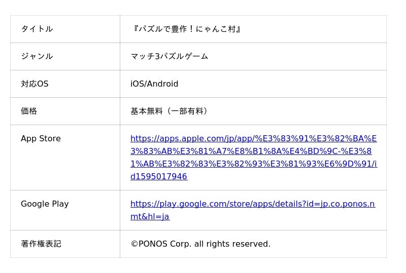 スマートフォン向けゲームアプリ『パズルで豊作!にゃんこ村』は、新作マッチ3パズルゲームです。今回、『パズルで豊作!にゃんこ村』では初となるリアルイベントを開催いたします。