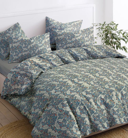 王道のアーツアンドクラフツスタイルを現代的で明るい配色でアップデート。寝室に楽しい雰囲気と格調高い安らぎをもたらします。