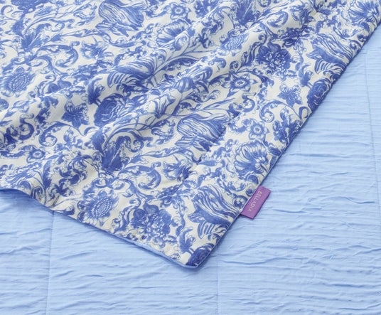 コットンガーゼとレーヨンニットのリバーシブル仕様。天然由来素材ならではの吸湿性と優しい肌触りで、年間を通じて快適にお使いいただけます。