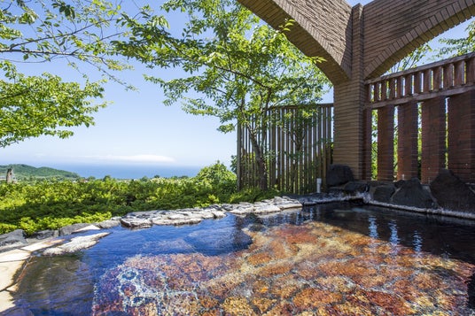 ヴィラージュ伊豆高原は、全室78平米以上のスイート&オーシャンビューを誇るリゾートホテルです。わんちゃん連れ専用のDoggy’sスイートルームは全室86平米以上と広々、愛犬と共に快適にお過ごしいただけます。リゾート気分を盛り上げる、大島と相模灘が一望できるレストランIZUMIで朝食・夕食のブッフェをご提供。伊豆を感じられる食材を使ったお料理をはじめ、朝食には出来立てのオムレツやフレンチトーストなどもお楽しみいただけます。また、源泉かけ流しの露天風呂や温水プール、キッズルーム、カラオケなど、館内施設も充実しています。