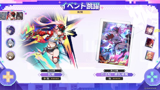 同時開催のイベント跳躍・光円錐「真心の集」では、「黄金の血で刻む時代」、「忍法帖・繚乱破魔」と「人生は遊び」の出現率がアップ!ぜひお見逃しなく!